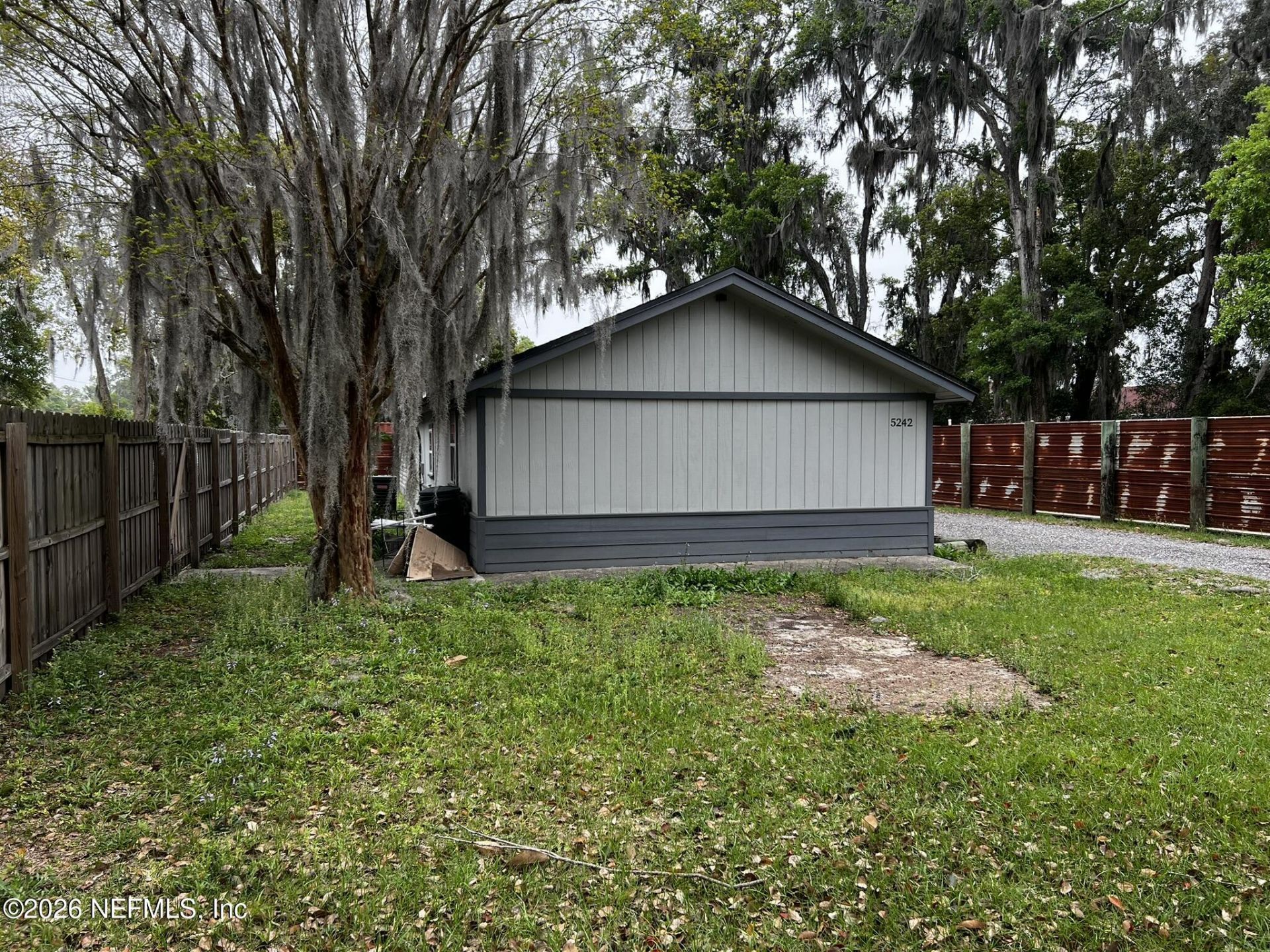 Looking for an ''Affordable Home''. This is a quirky little home that is tucked away on a quiet, dead end street. It is very convenient to NAS Jax, to Orange Park Shopping, and to various major chain grocery stores. It has an updated kitchen with granite countertops, soft-close cabinets and drawers, and a subway tile backsplash, laminate floors, inside Washer Dryer hookups, a 200 amp electrical service, and a 50 gal water heater, as well as an updated bathroom. with a full size shower and custom glass door. Perfect for a Single, a Couple, or a small family. The large yard is 111ft by 197ft, or slightly over 1/2 acre. The property is fenced on the back and both sides. There is also a 10ft X 20ft utility building with a double door, and it is elevated above the ground and attached to a deck. Previously, this property was a Rental Unit at $1,300/month.