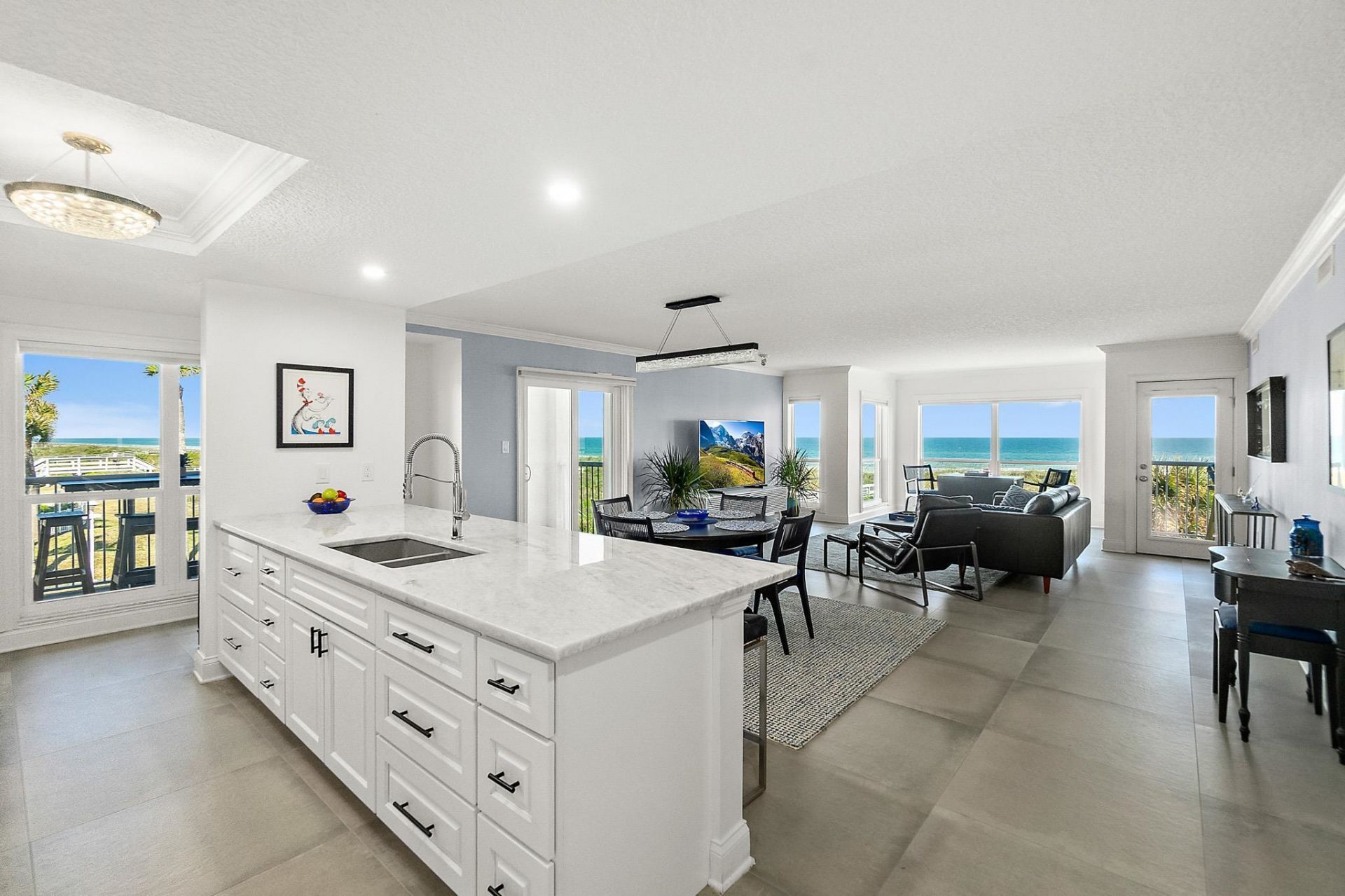 Highly desirable but rarely available: A direct ocean front corner unit in Atlantic East. These 3-bedroom 2 bath units have panoramic ocean views with spacious 300 square feet of balcony space. A 210 sq ft spacious balcony with northeast views to St Augustine pier and a 90 square foot balcony off the master bedroom with direct ocean views. The floor plan has been reengineered to create a more open floor plan with panoramic ocean views from the kitchen, dining, great, master and guest bedroom. Only the 3rd guest bedroom does not have an ocean view. This unit was totally renovated in 2022. This unit is a must see. The owner is a licensed realtor.